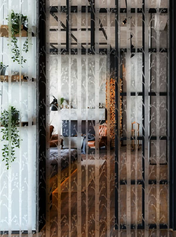 Appliqué sur un vitrage, un miroir ou une surface en verre, le film devient un élément décoratif à part entière, sans surcharger l’espace. Il permet d’introduire un motif visible tout en conservant une lecture claire des volumes.